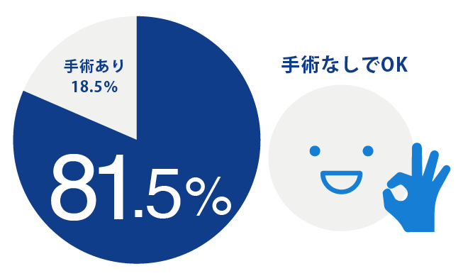 患者さんの自己治癒力を引き出す生活指導を行い、88%は手術を行っておりません。